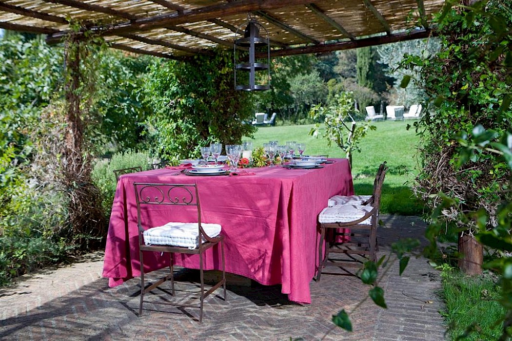 Villa Aiola provides maximum comfort in a peaceful, refined and very private atmosphere. Guests can enjoy walks and bike rides through the property’s private paths and visits to the nearby Montepulciano, Montalcino, and Cetona—famous for their history, cuisine and wineries. Also close is San Casciano dei Bagni—its best kept secret is an old Roman spa offering therapeutic thermal spring waters and beauty/health treatments. Enjoy typical local cuisine in this villa prepared by a Tuscan cook who has mastered the traditional culinary skills of the region.