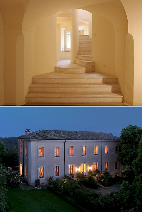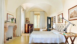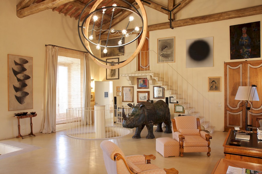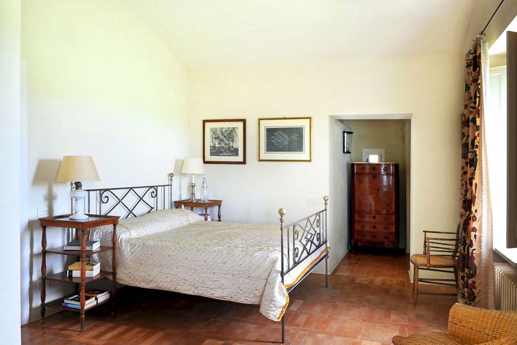This Roman countryside luxury villa can sleep up to 16-17 guests. Its spacious interiors have lavish furnishings in a classic and elegant style with several modern touches. The property features high wooden vaulted ceilings and large bay windows. These fill the rooms with light and offer stunning views out over the surrounding countryside. Marble floors are decorated with soft Persian rugs, and ancient statues stand alongside examples of modern sculpture. This display combines this villa’s unforgettable heritage with the luxury and convenience of a renovated country house. Additionally there is a library available for guests. It has a window seat and several comfortable sofas, perfect for curling up in a corner with a book. There are seven bedrooms. Six of these have double beds and one has two separate beds with the possibility of adding a third.