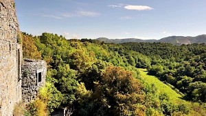 As you wander the carefully-landscaped gardens surrounding the house and castle, a sense of hushed splendour will transport you back to the dawn of this villa’s ancient history. The tumbling, wisteria-clad ruins of the ancient castle, built in the twelfth century, loom over the neat green lawns and fragrant borders of a traditional English garden, complete with elegant furnished terraces perfect for afternoon tea with an Italian twist. Wild flower gardens surround the ruins of an old church. These are crossed by trickling streams and dotted with caves and grottos to explore. The meandering remains of the original tower and its surroundings hold several surprises. These include a secret garden with a pond of water lilies and a beautiful swimming pool nestled inside the walls of the ancient castle itself.