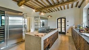 The downstairs living areas are marvellous with abundant space, comfort, beauty, originality and light. Many of the original features, such as the timber-beamed ceilings, deep set windows and brick archways have been preserved and then brilliantly contrasted with modern fixtures. The fully-equipped kitchen is guaranteed to become a morning meeting place for lengthy brunches as you sit around the breakfast bar and decide which mouthwatering menus you are going to enjoy that evening. You can choose whether to dine indoors in the more formal dining room or outside al fresco as the Italians do in the summer months.