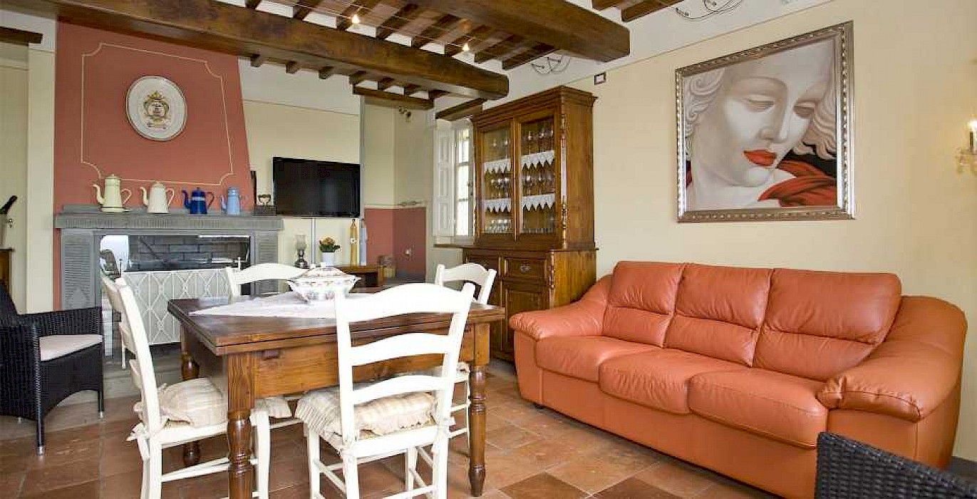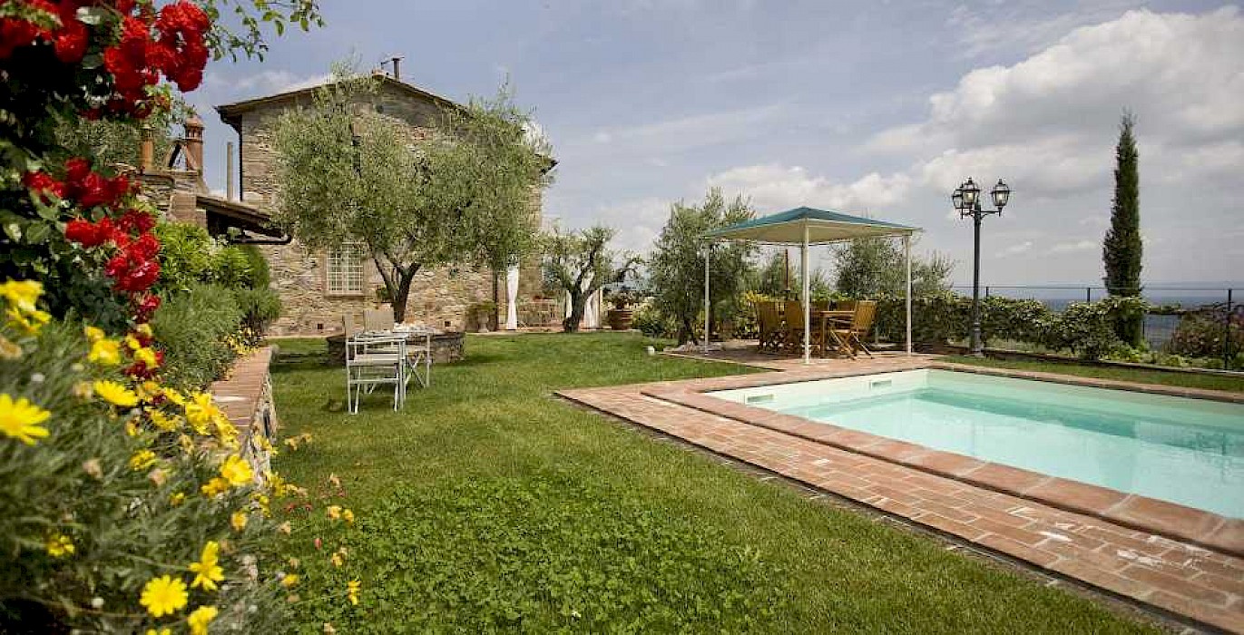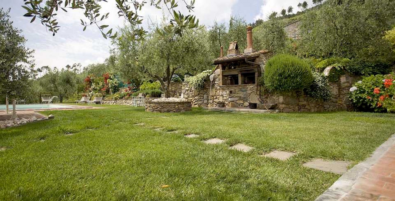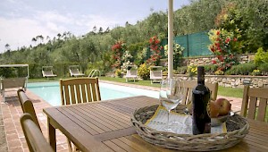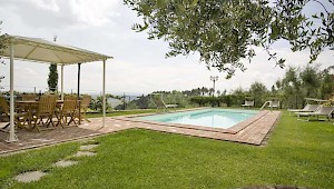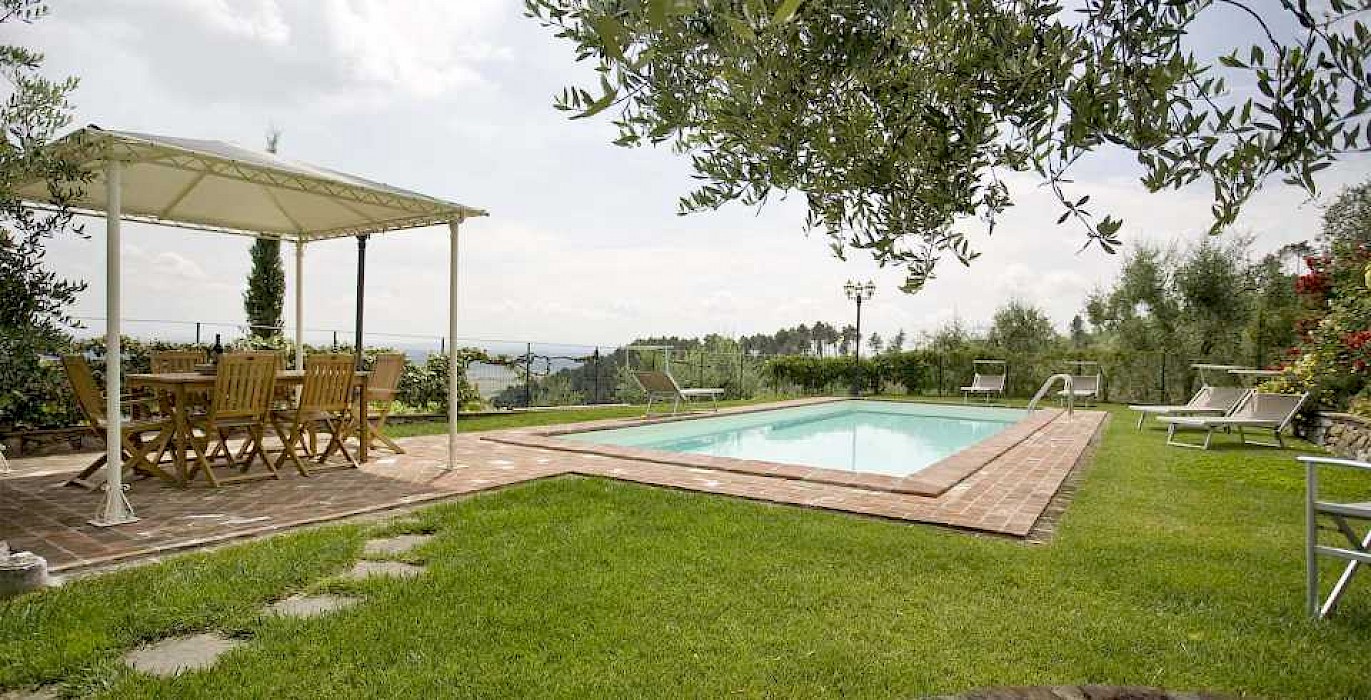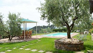 This pretty farmhouse is located 2 km away from Castelvecchio di Compito, a small medieval village on the hills between Lucca and Pisa. The area, known as Compitese, is renowned for its fine olive oil and for its beautiful camellias. The house is placed in a very quiet position and enjoys magnificent views on the surrounding countryside and the plane below. The owners have been renting for many years another property in our program, Al Mennucci, and when restoring Nel Guasto they used all the experience they achieved during the past years. During the restoration work they took great care in using only authentic Tuscan materials and they furnished the interiors with a nice combination of antique furniture and modern facilities, including flat tv in each room. Particular attention was given to the kitchen /dining area, very light, comfortable and well-organized, and to the outside eating area, close to the stone-built barbecue and pizza-oven, where to enjoy out-door meals with beautiful views. The swimming pool is placed in the most panoramic position on the very well kept garden. Nel Guasto is a real oasis of peace and relax, but being at only 15 km from the nearest motorway exit it is also an ideal base for touring Tuscany.