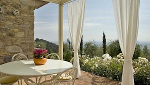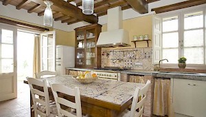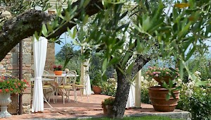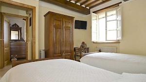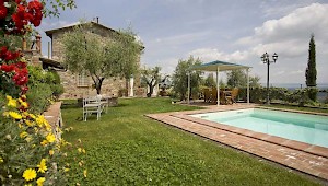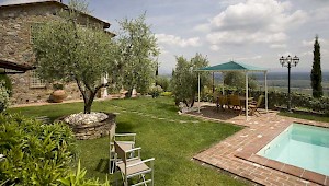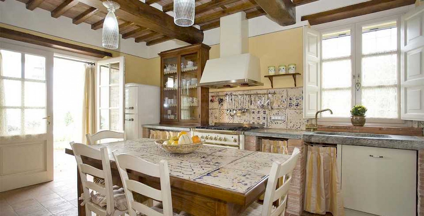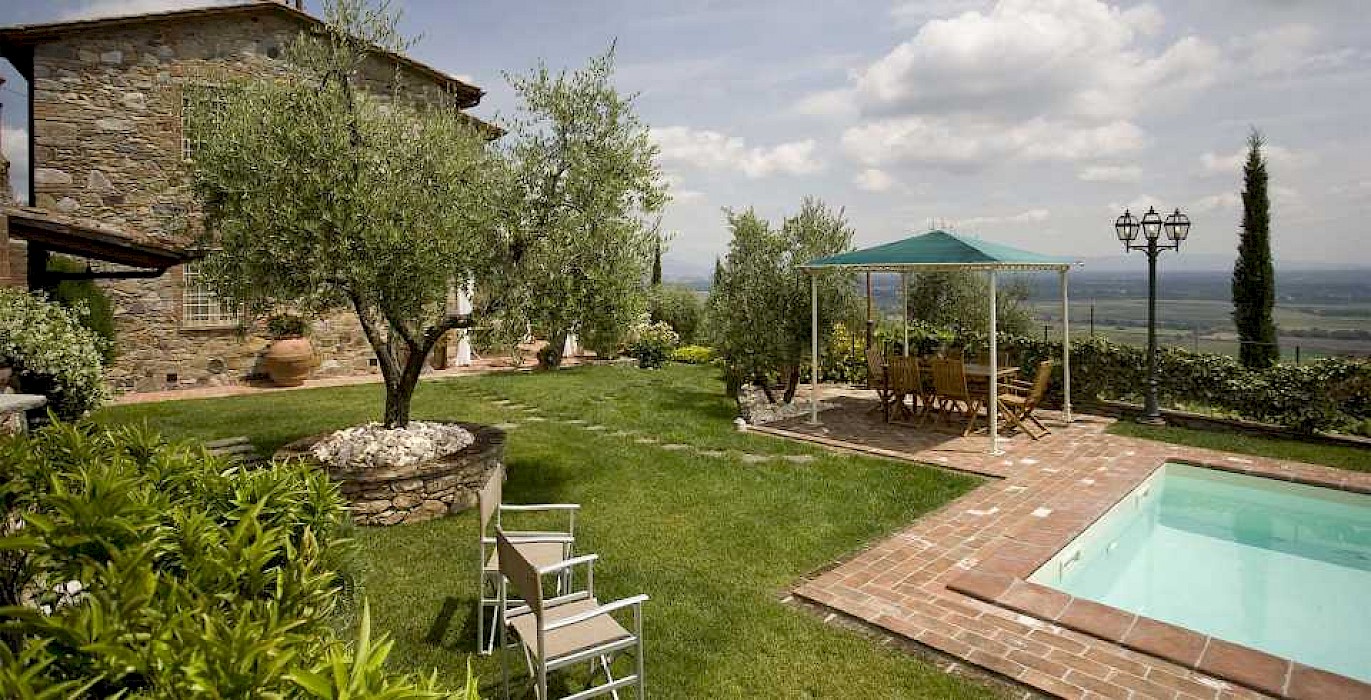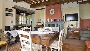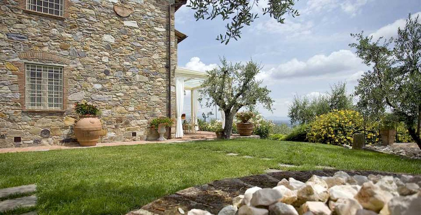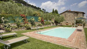 This pretty farmhouse is located 2 km away from Castelvecchio di Compito, a small medieval village on the hills between Lucca and Pisa. The area, known as Compitese, is renowned for its fine olive oil and for its beautiful camellias. The house is placed in a very quiet position and enjoys magnificent views on the surrounding countryside and the plane below. The owners have been renting for many years another property in our program, Al Mennucci, and when restoring Nel Guasto they used all the experience they achieved during the past years. During the restoration work they took great care in using only authentic Tuscan materials and they furnished the interiors with a nice combination of antique furniture and modern facilities, including flat tv in each room. Particular attention was given to the kitchen /dining area, very light, comfortable and well-organized, and to the outside eating area, close to the stone-built barbecue and pizza-oven, where to enjoy out-door meals with beautiful views. The swimming pool is placed in the most panoramic position on the very well kept garden. Nel Guasto is a real oasis of peace and relax, but being at only 15 km from the nearest motorway exit it is also an ideal base for touring Tuscany.