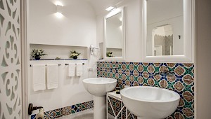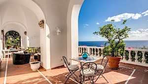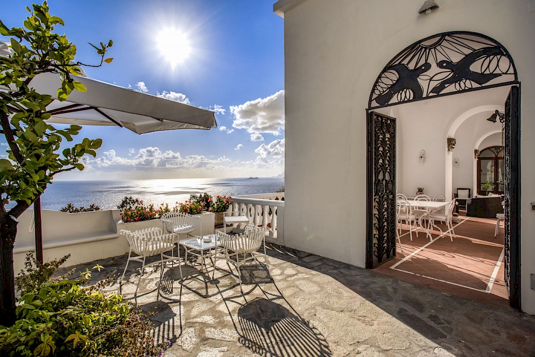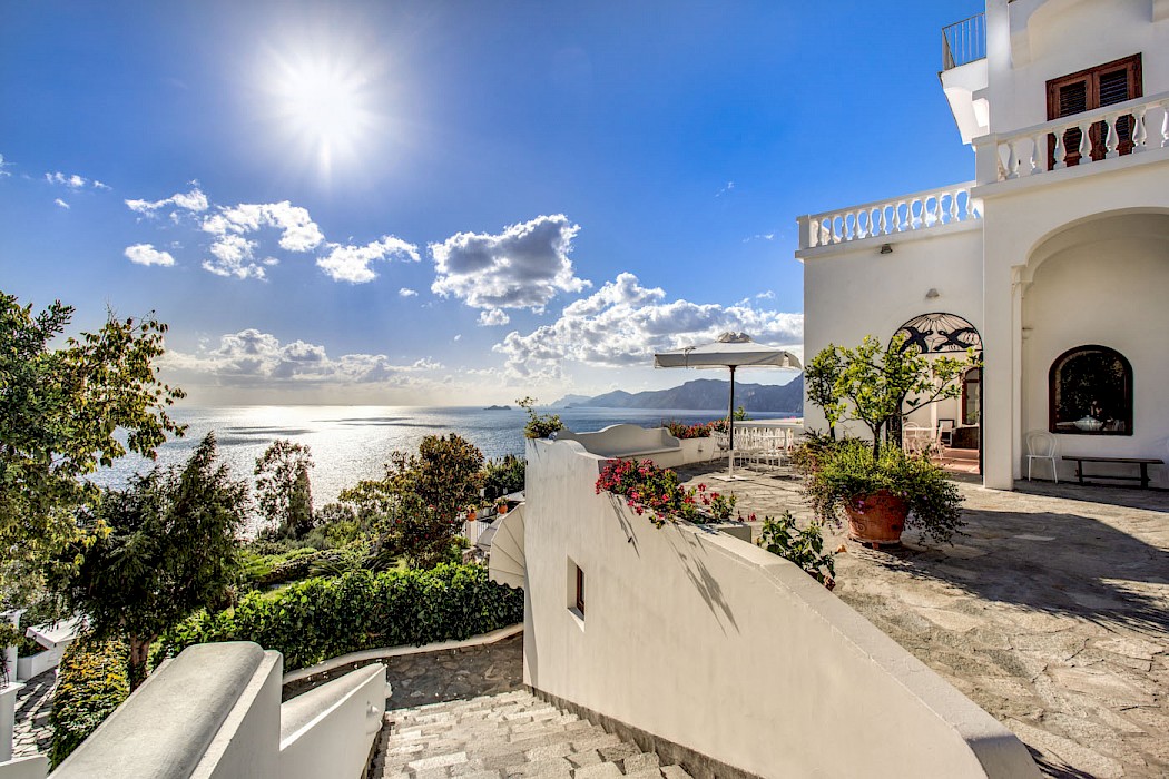 The striking white stucco structure of Villa Diana is perfectly positioned in the beautiful village of Praiano, within easy reach from Positano, Ravello, and Amalfi. The sun-drenched villa boasts the classic Amalfi coastal aesthetic with multi-level floor plan, white washed walls, arched columned patios, and colorful ceramic tiles, typical of the area. Enjoy spectacular vistas from the villa’s several sprawling terraces, dine alfresco on the patio while admiring amazing sunsets, or swim in your private oversized heated sea-water swimming pool. If the Amalfi Coast is your must-see destination, start by booking the right villa, Diana, and you will enjoy the exciting experiences and local attractions when you are not relaxing poolside. The villa is also an ideal place to host weddings and special celebrations.