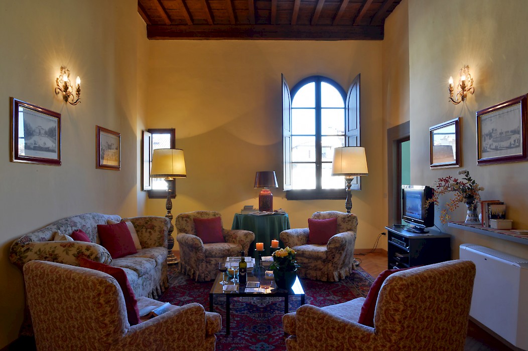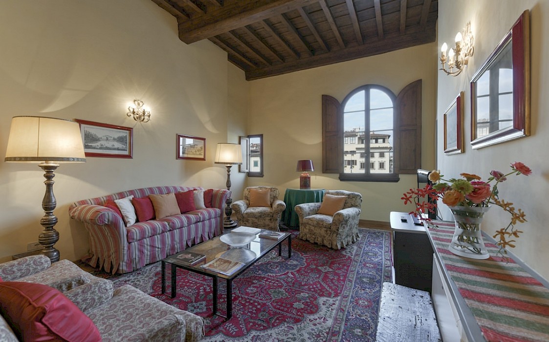 The palace building, which dates back to the second half of sixteenth century , is located right on Piazza Santa Croce, in the heart of Florence city center. The facade of the building is one of the most relevant elements of the entire Square. The walll decoration consists of beautiful paintings which represent allegorical illustrations, cherubs, flowers, arabesque and plant elements. In this district there are streets full of shops, delightful restaurants and within a few minutes walk it's possible to reach the most important monuments of Florence.