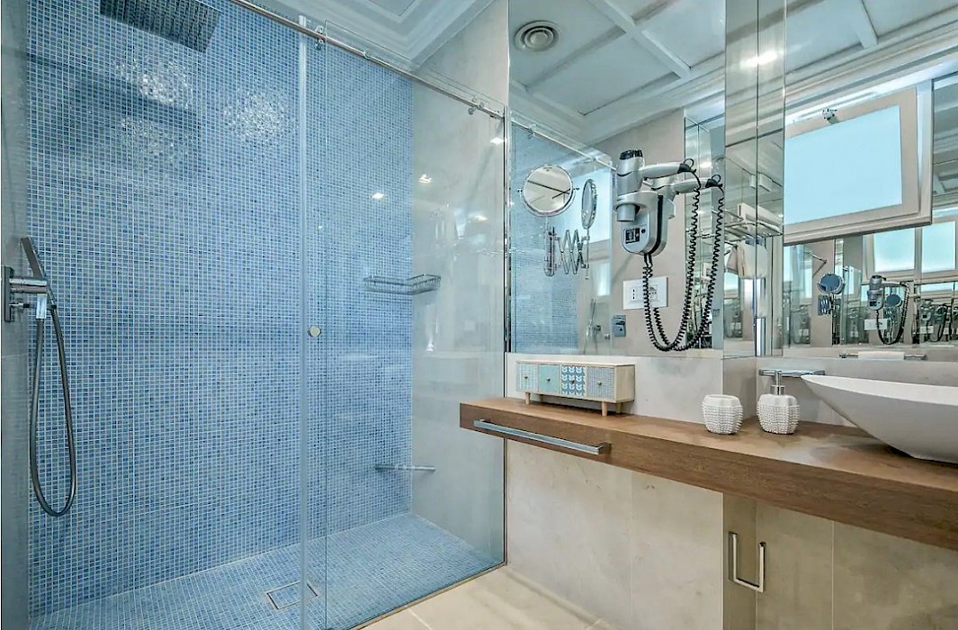 Queen bedroom with en-suite bathroom with shower, panoramic balcony with sea view.