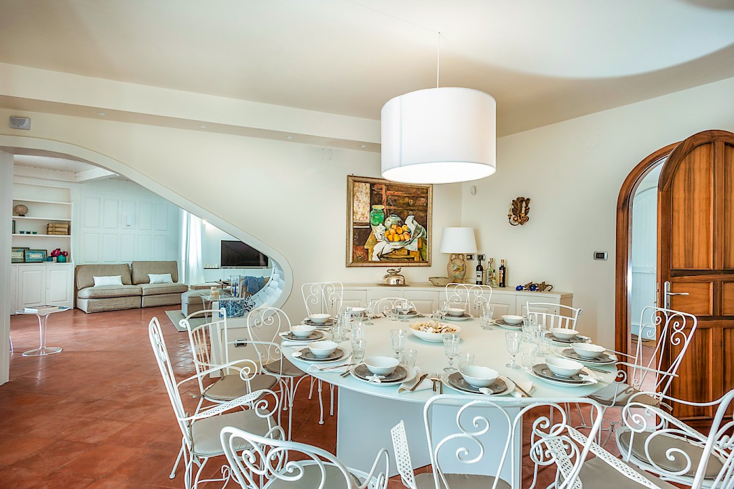 8,000 sq ft of exterior space - the free-form private swimming pool is set in the back of the house. The large paved sundeck is equipped with lounge furniture, and a large tree protects you from the sun during the hottest hours. Adjacent to the kitchen, under a verdant pergola, there is a large table which can accommodate the entire group for sharing and enjoying casual meals. The built-in sitting along the sea-front panoramic terrace is the ideal spot to feel the invigorating sensation of inhaling the fresh salty air and to relax at the sound of the waves. A rental boat facility is located nearby if you decide to cruise along the coast.
