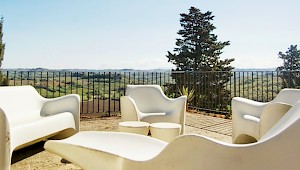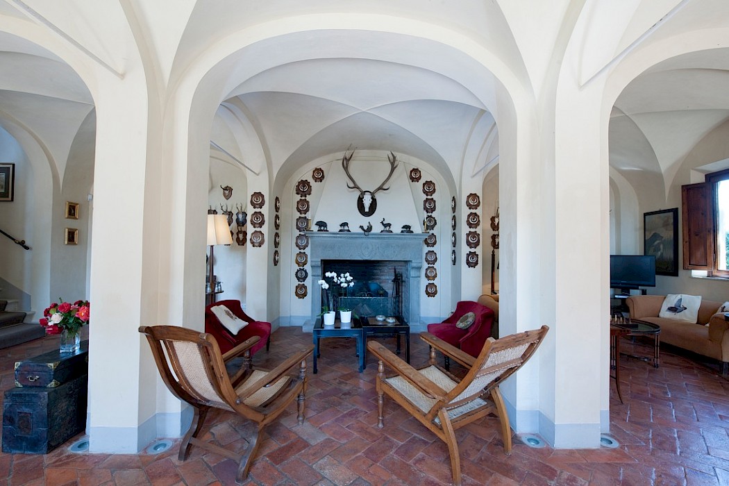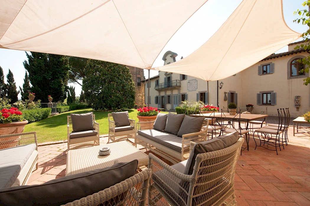 Every place in the Tuscan landscape carries traces of culture going back through the centuries. Piccolo Castello is a significant example. It lies along the old Via Francigena, an ancient trail used from medieval times by the pilgrims from England and France on their way to Rome. It was founded in the XIIIth century, when a noble and powerful family from Certaldo, the Conti Alberti, chose this place to be the centre of the Court of Val D'Elsa and built a castle there. In succeeding centuries it was transformed into an elegant aristocratic villa, but there still remains traces of the original square tower and of the walls next to the villa. Il Castello has been recently renovated to provide all the charm and uniqueness of a historic home, without changing the atmosphere of an aristocratic villa. It has also been equipped with all the latest modern conveniences to satisfy even the most demanding clients: air-conditioning, hydro massage baths, satellite TV, telephone with Internet connection, laundry with washing-machine, dishwasher, freezer, microwave oven, DVD and VHS players. In the garden there is a swimming-pool (10 x 5m), situated on the ramparts of the castle, and with an area shaded by a loggia, the lemon-house converted into a living-room with terrace, and the 13th century chapel. The domestics (who live in an apartment on the first floor with independent access) clean the bedrooms and the bathrooms daily and prepare the continental breakfast 7 days a week between 9.00 and 12.00 in the morning. On request are available: cook, babysitter and further domestic help. Il Castello is recommended for family groups with not more than 4 children less than 12 years old.