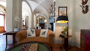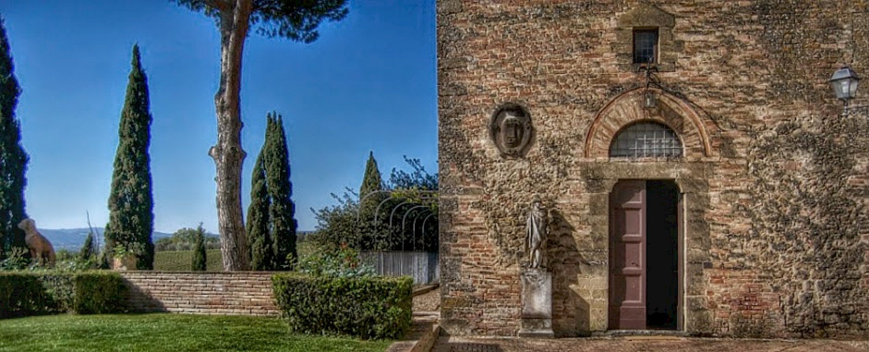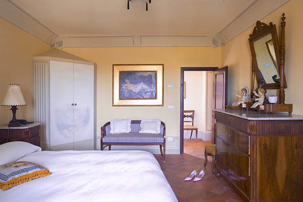 Piccolo Castello is immersed in the heart of Tuscany. This splendid mansion is a place where refined elegance beckons total relaxation from the moment one arrives. A ravishingly updated 13th-century villa high in the hills over Castelfiorentino, this property offers a great selection of art, antique bath tubs completely renovated in 2004 and valuable artworks. Spacious boudoirs are graced with original frescoes, scented candles and fresh flowers, and there are a sacred chapel and a swimming pool area with loggiato unique in the entire region. The estate sits on a hill facing San Gimignano - the towers are visible from the main garden and facade of the property - on 25 acres full of olive groves, yet it is located just a few kilometres outside Florence, just perfect for frequent immersions in the Tuscan capital city or the great alternative of San Gimignano (twenty minutes away).