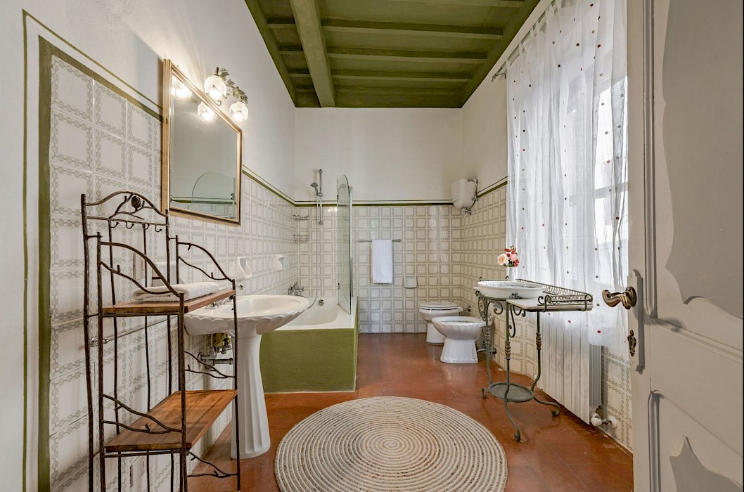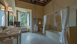 - Bedroom 7: King size bed, Shared access to bathroom with Bedroom 9, Shower/bathtub combo, Bidet, Air conditioning, Fireplace