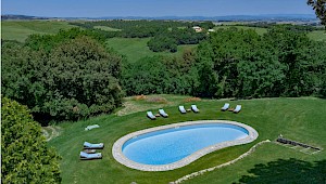 Rising out a verdant Tuscan valley, this delightful and historic castle is set in the idyllic green surroundings of the Val d'Orcia. Fully renovated, the exterior stone turns golden at sunset, with guests free to enjoy the grand rooms, gardens, vineyard, courtyard and poolside lawns. A profusion of charming villages, vineyards and nature reserves are just minutes away, with majestic Siena nearby.