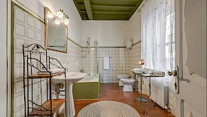 Visible from kilometres away, the heights of Castelnuovo Tancredi announce themselves upon the guest from a distance. Entering the welcoming and Italian-tiled foyer, guests will experience a perfect night’s sleep in the huge bedrooms that feature vaulted ceilings and canopy beds. When morning dawns, guests can take in the stunning, rolling hillsides of the protected valley from the villa’s open-air terrace, before exploring the rambling, beautifully maintained gardens, the blue pearl that is the villa’s pool, or the perfectly-maintained tennis court. The stone, ivy-lined walls of the impressive inner courtyard make for a perfect oasis of peace, with the afternoon warmth emanating around the shaded alfresco table.
