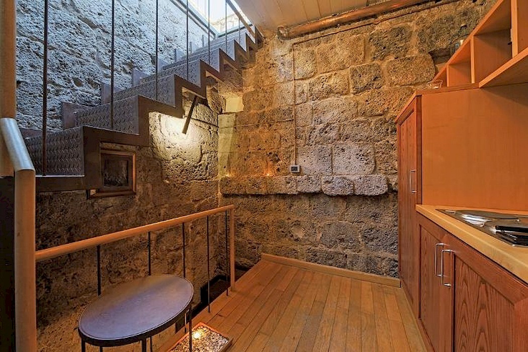 Transforming a medieval tower with its massive stone walls ranging from 2 meters at the basement to 3 meters at the top floor into a characteristic 10-level living space has been not an easy architectural challenge. The spaces inside the tower have been created thanks to a careful restoration with respect for the historical value of the building. In fact, the architects responsible for the project have left the original structure intact while working mainly on material recovery. Every single space has been designed to bring the tower back to life.