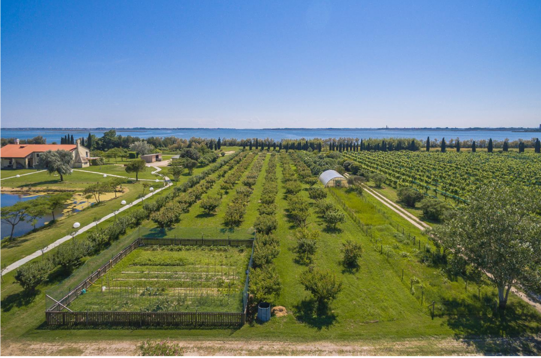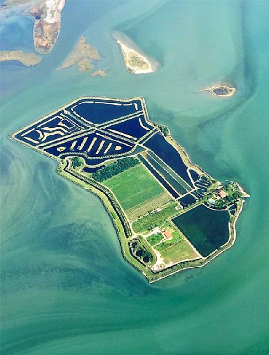 The island is also home to thriving organic orchards and gardens lined up along vineyards (Cabernet Sauvignon and Merlot grapes).It is an amazing experience to walk along the paths that intertwine on the island, to reach the ancient little church, or to walk the ponds. The small consecrated church, in the middle of the waterways crossing the island, might be an unusual and romantic place to celebrate a wedding, or Mass celebrating one of life's milestones. There is a pebble beach on the island and for those who enjoy fishing, they will be able to fish for sea bass and bream.