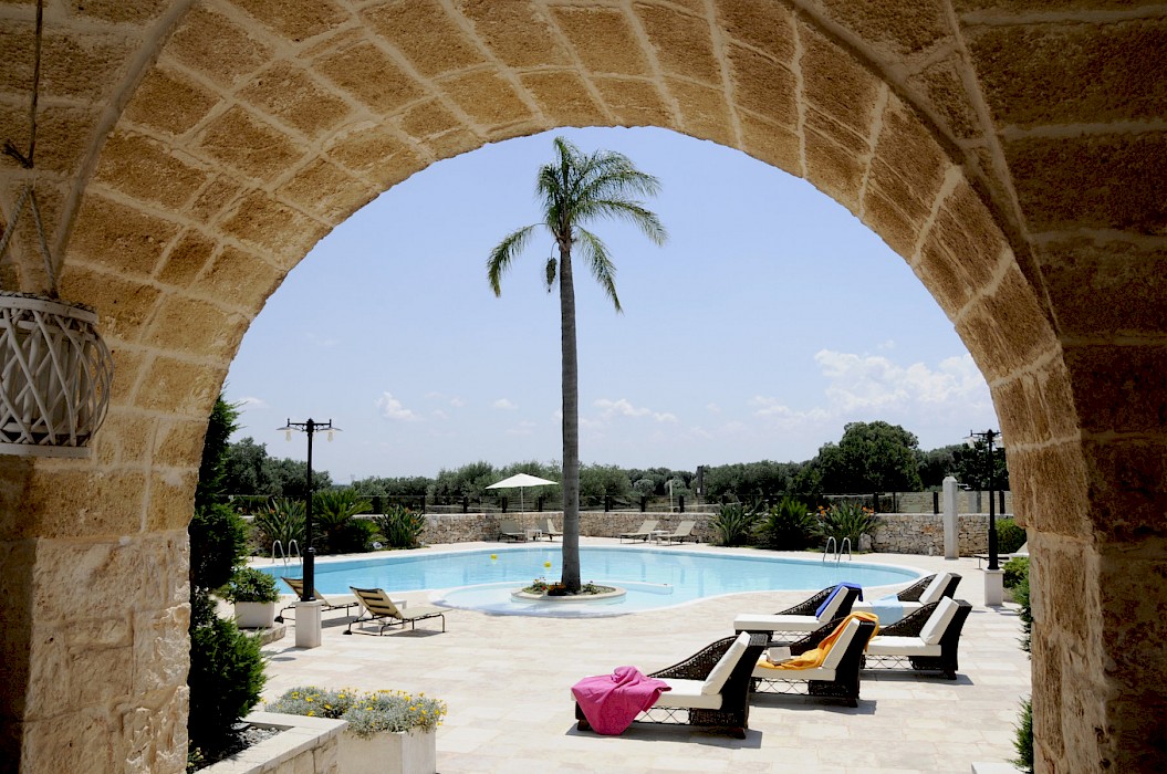 Villa Ceglie is a perfect example of classic Mediterranean architecture. The low profile, red clay tiled roofing, raw stone archways, and the emphasis put on the courtyard and terrace space between the individual houses is all right on point. The white-tipped peaks of the bee-hive shaped houses are exactly like those of UNESCO’s Alberobello region. The bedrooms are split between four in the main house, and two separate guest houses, all feature double beds and en-suite bathrooms. The decor is all stone and designer furniture, creating a unique, warm, and elegant space for your group.