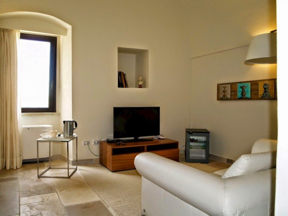 The first floor set in the historic tower reveals two double bedrooms both with terrace access just for the two of them. One faces the crystal sea and the other faces the green Pugliese countryside; both have terrace and common living room access. Each has its own private bathroom with shower stall.