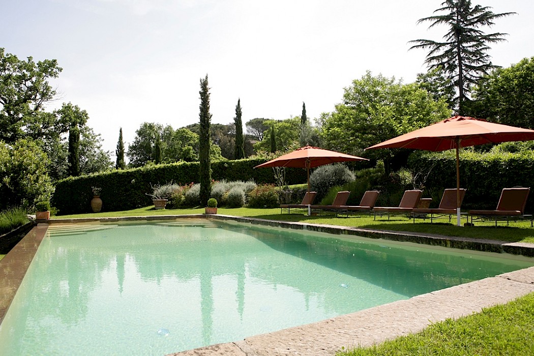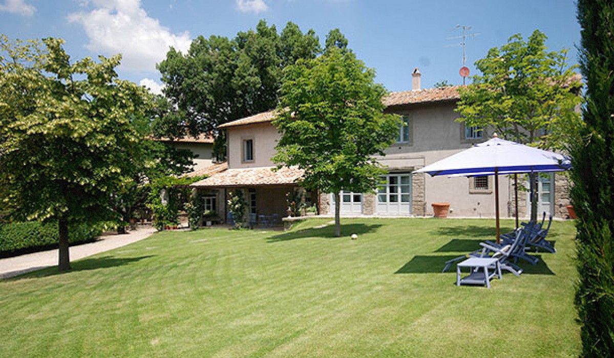 Villa Merlano lies in the hills around Viterbo, an old town of etruscan origins and with a great history behind it, carrying in its numerous monuments, its renaissance palaces, medieval districts, monastries and churches from several different epochs, towers and elegant fountains, traces of the splendour of the period when it was selected to be the headquarters of the papacy. It lies at the heart of Tuscia, an area embracing the north of Lazio, part of Tuscany and Umbria, where the etruscan civilisation was widespread and where you can still see the traces in the many archaeological sites, which together with the ancient villages, castles and the splendid countryside, open up an area which takes you by surprise with its wonderful atmosphere and its beauty. Once you have gone through the gate which gives you access to the property, you enter the large grounds, where you will find an perfect oasis, a world of its own governed by history, cordial manners and attention to detail in a magical atmosphere. Large grounds surround the villa which has been in the owners' family since 1700 and is of considerable historical importance: the great-grandfather of the current owner was a famous engineer and a keen archaeologist, and he carried out around here some of the most important digs and brought to light in the grounds the remains of a roman theatre, so well-preserved that in the summer they present plays here. The grounds, where there is also a small private chapel, are very well looked-after, with ancient trees, box hedges and imbued with the scents of flowers and aromatic plants. The rest of the estate is covered in olive trees, producing quality extra-virgin olive oil without the use of pesticides. In the grounds and in the garden wooden benches invite you to relax in the shade, and around the villa there are pergolas and tables for taking an aperitif and for dining outside by candlelight, prepared with elegant care by the domestic staff, along with the swimming-pool with a splendid view over the olive groves and the town of Viterbo. Inside, you find the elegance and warmth of an old home from times gone by and an atmosphere enriched by family treasures: antique pictures and books, statues, painted ceilings, decorated fireplaces, refined materials. The rooms are large and light, the bathrooms are elegant, and the most modern comforts blend effortlessly with the rest of the furniture (flat screen TVs, even in the bedrooms). Next to the villas, the old farmhouse has recently been transformed into a refined guest house, which can host in its rooms another 8 guests. It reflects its farming origins in its sober and elegant lines, and has soft, restful colours, linen bedcovers and embroidered handtowels. The owners live in a part of the farmhouse, and are always ready to try to satisfy the demands of their guests, who while staying at Villa Pianicara should only be thinking about their. Next to the villas, the old farmhouse has recently been transformed into a refined guest house, which can host in its rooms another 8 guests. It reflects its farming origins in its sober and elegant lines, and has soft, restful colours, linen bedcovers and embroidered handtowels. The owners live in a part of the farmhouse, and are always ready to try to satisfy the demands of their guests, who while staying at Villa Pianicara should only be thinking about their relaxation and comfort: in fact the domestic staff look after the cleaning and the food shopping and the cook looks after the preparation of the breakfast and dinner, the waiters see to the waiting at table (the hours and costs are defined in the price-list). The lady owner, who is also an expert cook, will on request personally supervise cooking courses, taking her inspiration from the local Lazio cooking traditions and from Sicily, where she comes from, preparing traditional mediterranean dishes that are simple but extremely tasty, using the products of the estate, and above all overseeing the presentation, of which she is real expert.