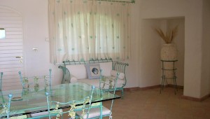 Adjacent to the living room there is the dining area with an iron made table and crystal top that seats 8 guests; next to the dining area there is the fully equipped kitchen. Next to the kitchen there is a double bedroom with a private bath and separate entrance, ideal for staff or a nanny. The 4 bedrooms - 3 double bedrooms and 1 single are located on the opposite side of the of the villa next to the living area. All rooms have private shower baths, air conditioning and private patios with access to the gorgeous immaculate Mediterranean garden.