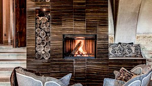 60 sqm of living room, lounge room with bar and open fire, professional fully equipped kitchen, with access to outdoor covered sitting area.